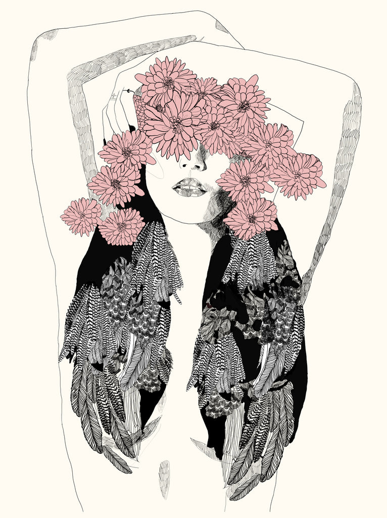 'Flower Power' is a beautifully detailed piece by Hannah Gilson, an illustrator and educator based in London who produces work under the pseudonym Jaybird Illustration.