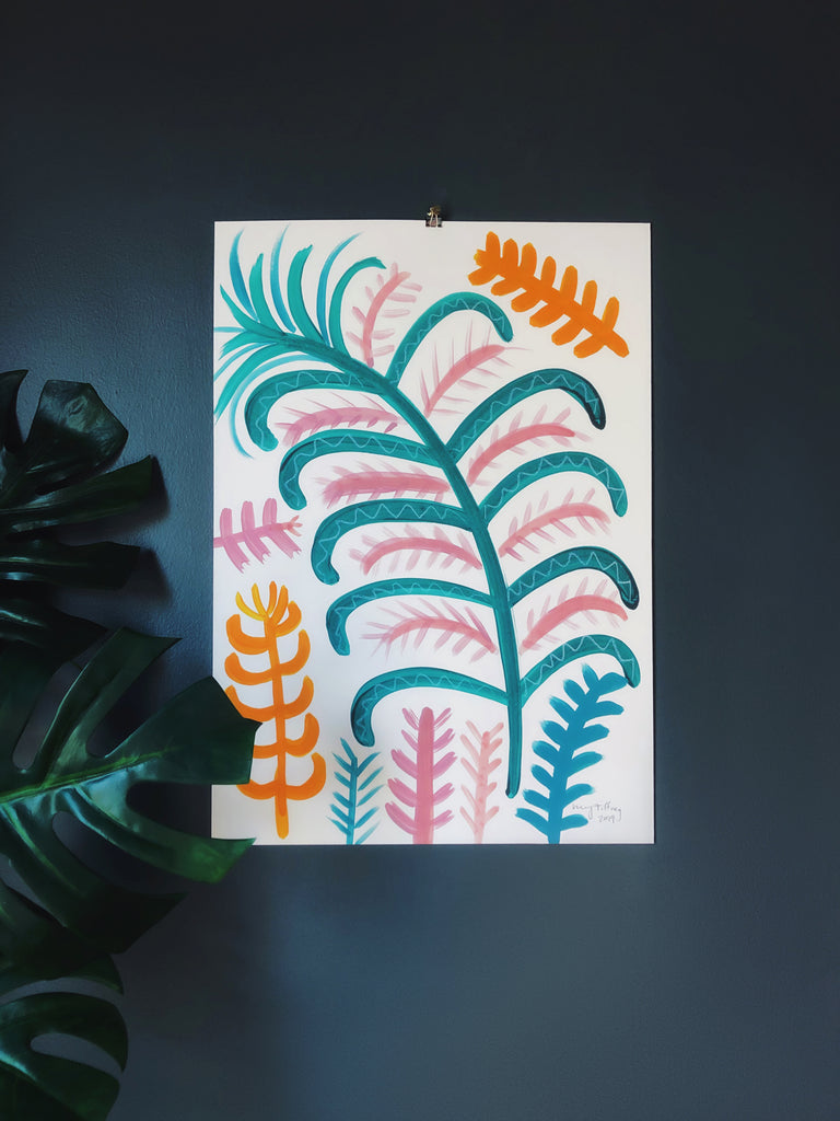 Lucy's unique, spontaneous and vibrant style combines flora and fauna with strong colour palettes in her signature hand painterly approach.
